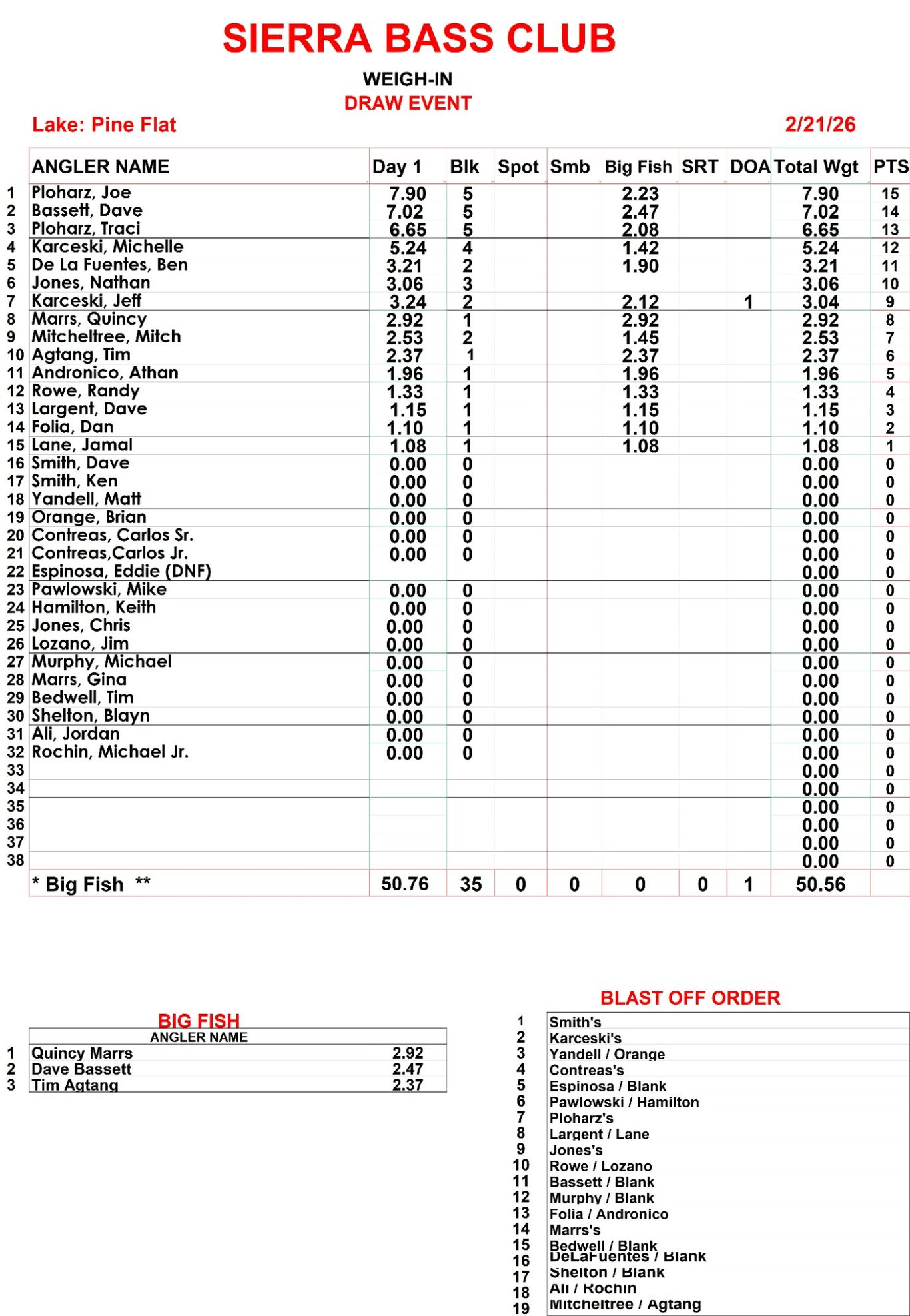 This is a ranking of how the members of the club scored in the monthly tournaments.